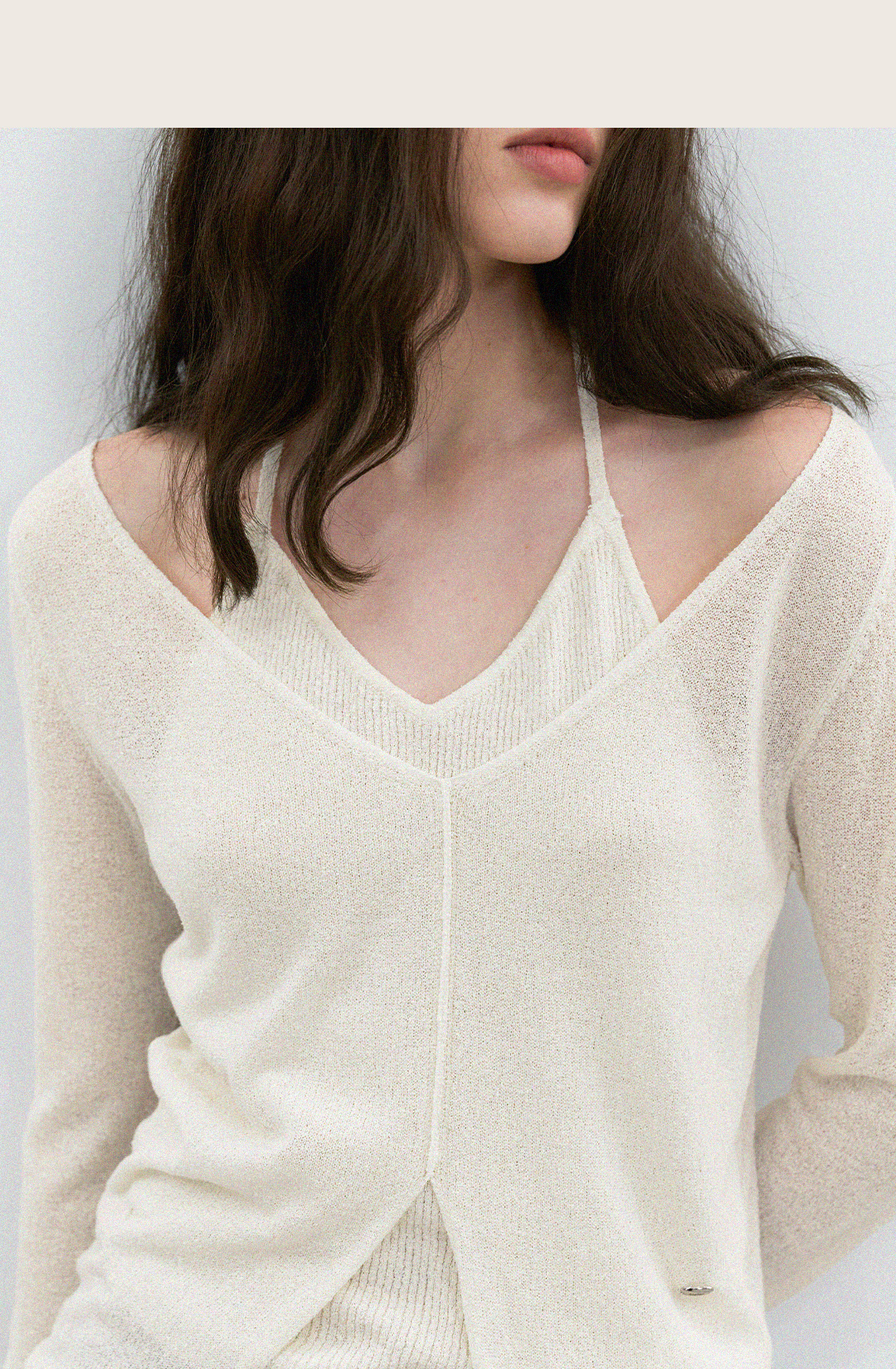 (T-7241)SUMMER BOUCLE LAYERD HALTER NECK KNIT TOP