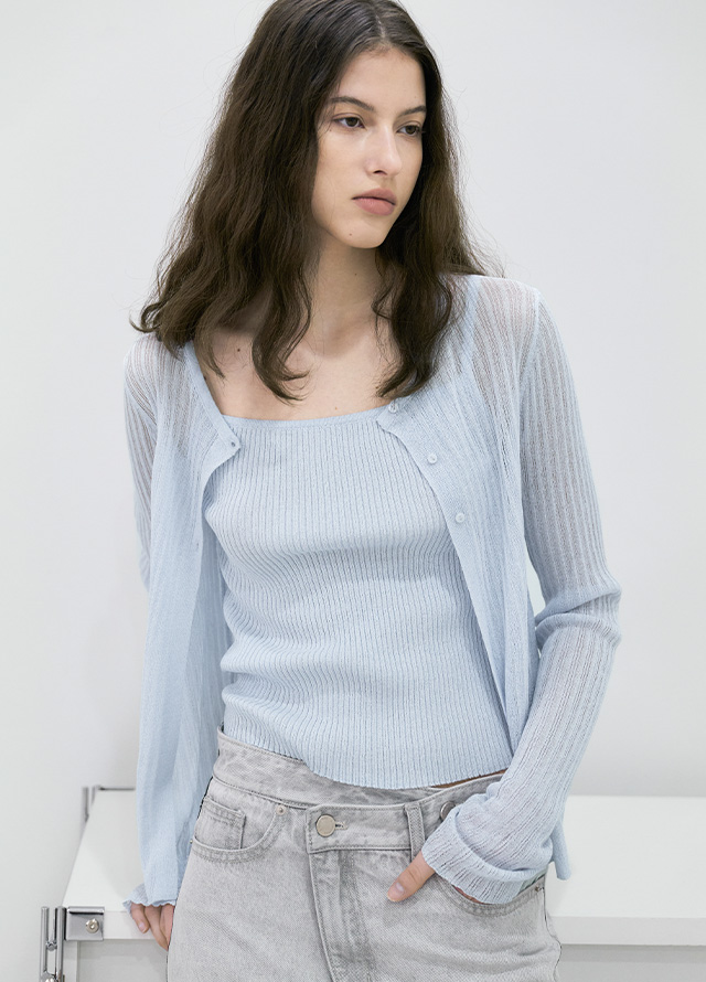 (CD-2262)COOL TOUCH SLIM RIBBED TOP&CARDIGAN SET