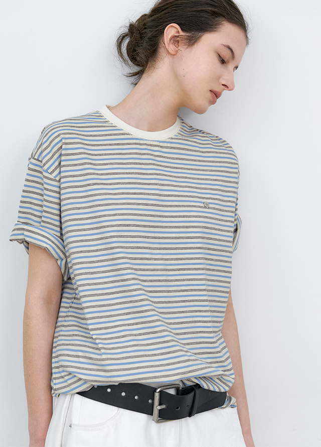 (T-7216)MULTI STRIPE BOXY TEE