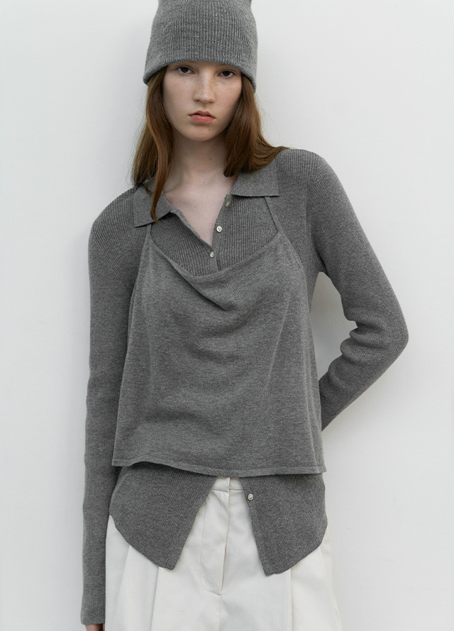(T-7189)HALTER VEST LAYERD BOAT NECK KNIT